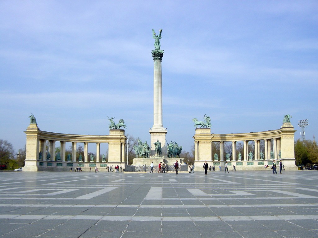 Our next stop was the Heroes Monument area, a vast, paved square featuring a 36-metre column with a statue of Archangel Gabriel on top. At the base, there are several statues of Magyar chieftains and behind the column and on either side of it, there are two semi-circular colonnades, with groups of horsemen on top and statues of past Hungarian rulers within the square.