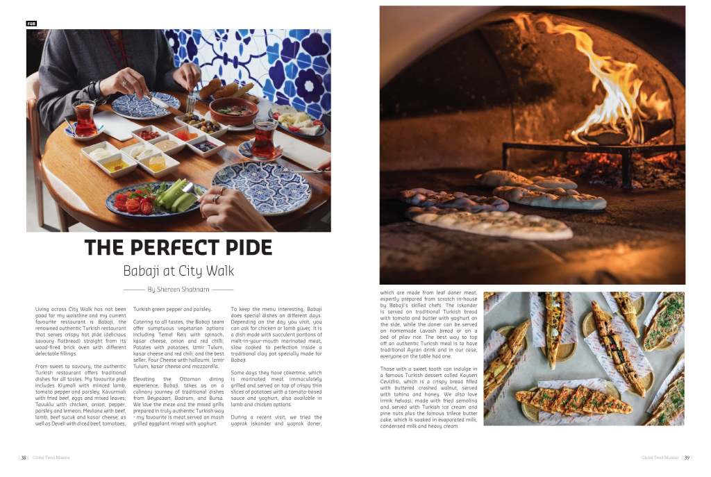 Living across City Walk has not been good for my waistline and my current favourite restaurant is Babaji, the renowned authentic Turkish restaurant that serves crispy hot pide (delicious savoury flatbread) straight from its wood-fired brick oven with different delectable fillings.