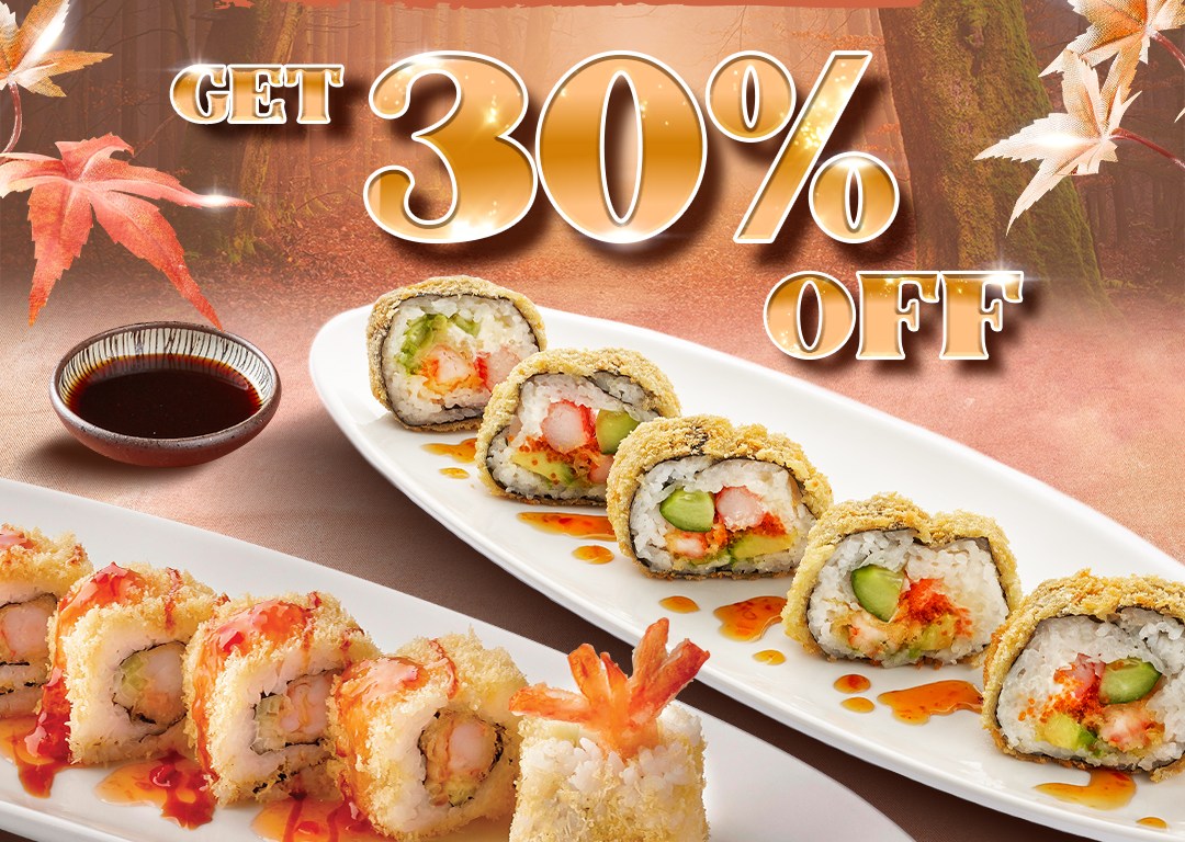 What: When you buy two rolls at Sumo Sushi & Bento outlets, you get 30% off. Offer is valid on Sweet Potato Crunch, Crunchy Philly, Crunchy Crazy, Chicken Katsu Roll, Dynamite Roll, Crispy Cream, Veggie Shamrock and Veggie Vietnam.