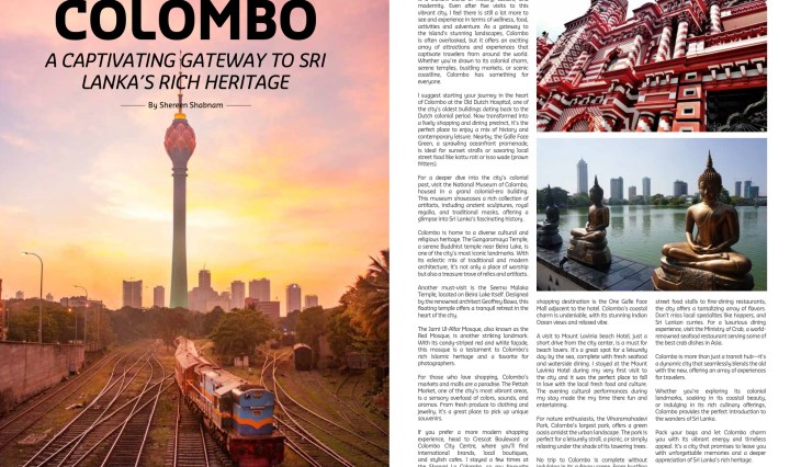 Shereen Shabnam Colombo, the bustling capital of Sri Lanka, is a vibrant blend of history, culture, and modernity. Even after five visits to this vibrant city, I feel there is still a lot more to see and experience in terms of … Continue reading Colombo: A Captivating Gateway to Sri Lanka’s Rich Heritage